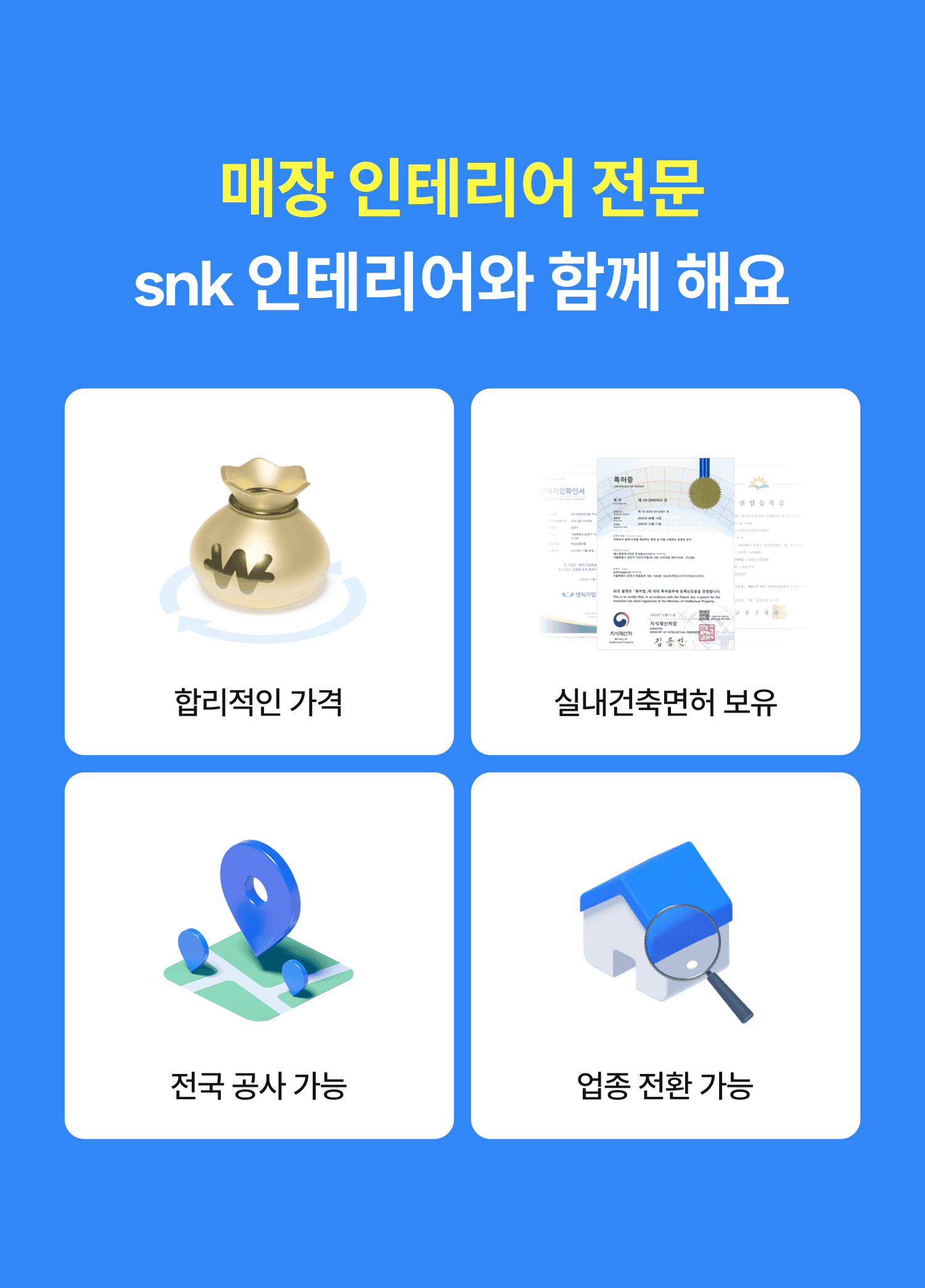 • 상담 및 견적 안내를 위해 SnK디자인에 신청 정보가 제공됩니다.