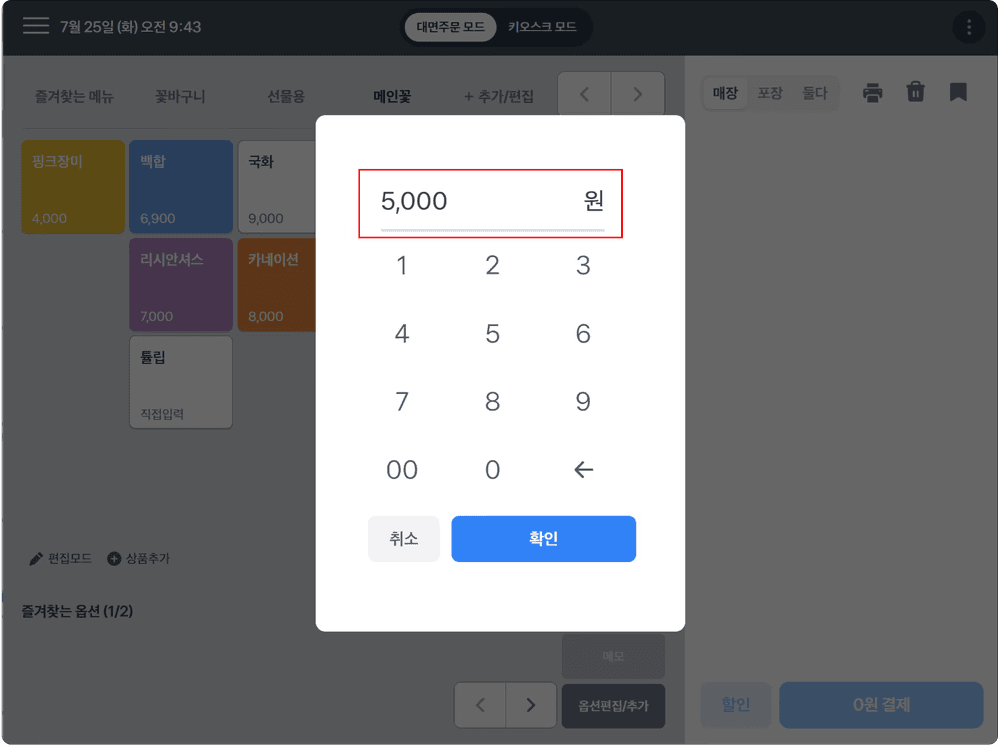 그때 그때 가격을 입력해 결제할 수 있어요.