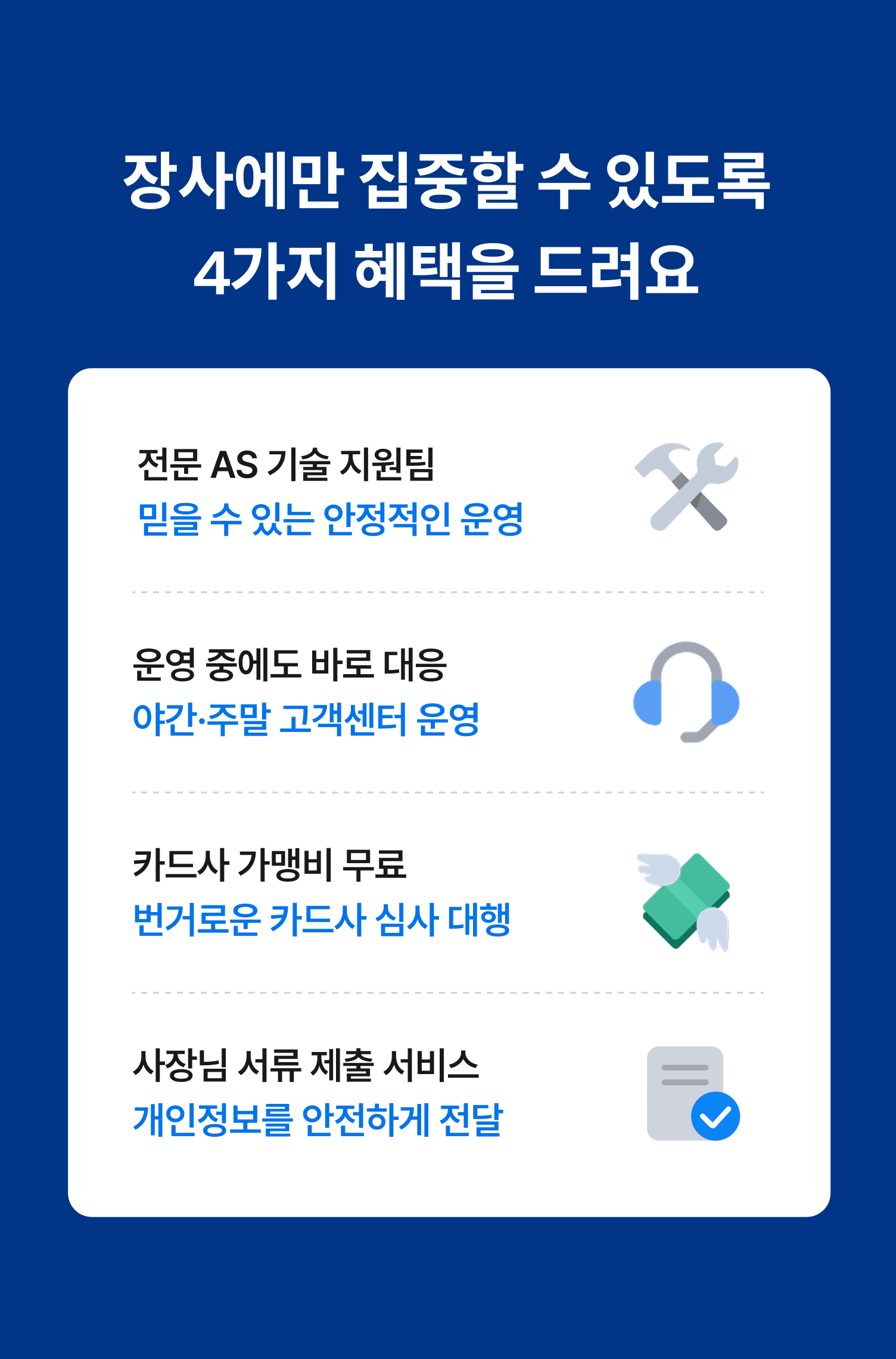 프로모션 적용 혜택으로, 폐업 시 위약금은 아이샵케어에서 부담하고 있습니다. 단, 단순 변심으로 변경 시 정상 가격에서 남은 기간 만큼의 위약금이 발생될 수 있습니다.